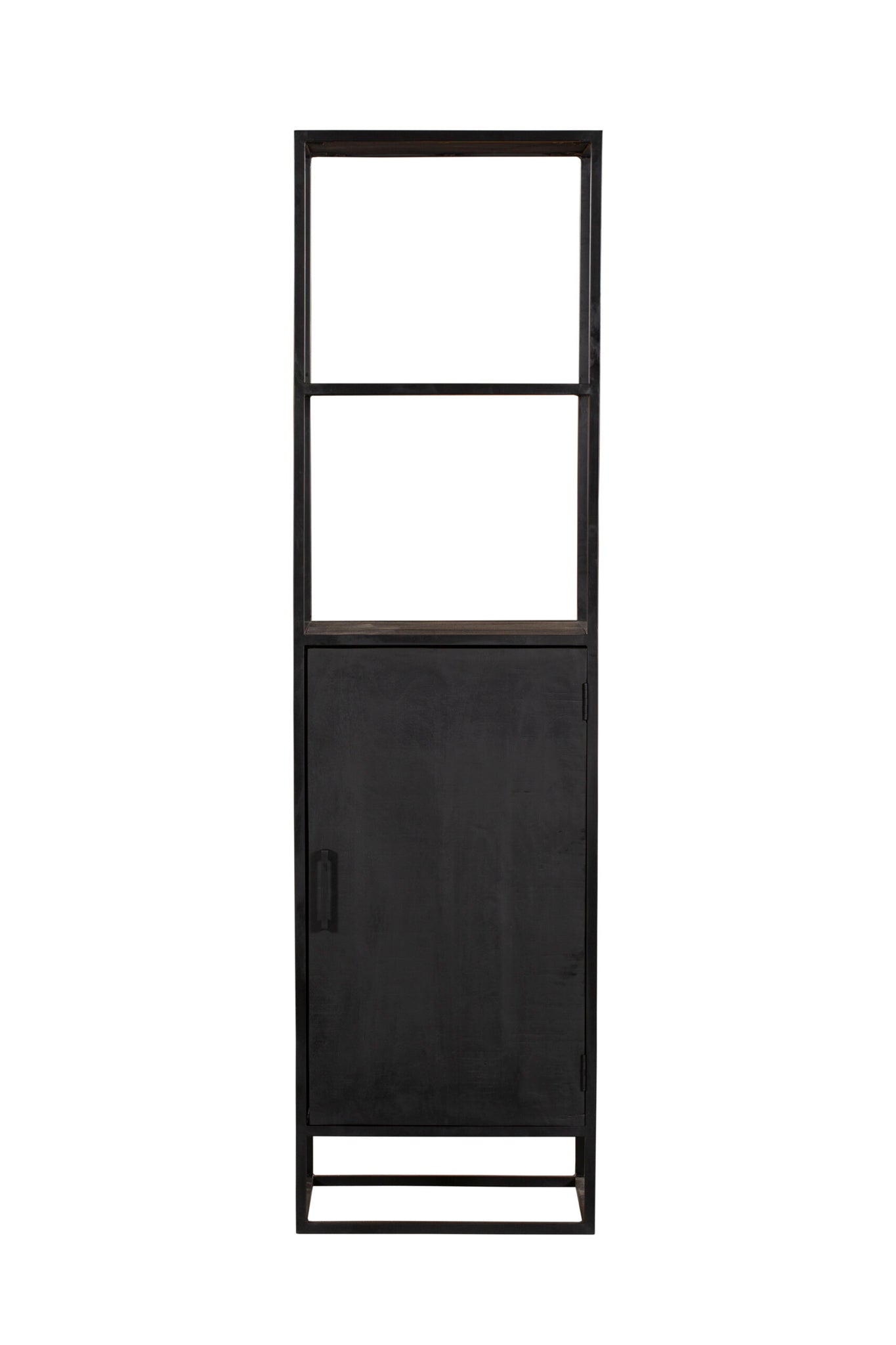 Boekenkast Denver Zwart | Mangohout en staal | 1 deur